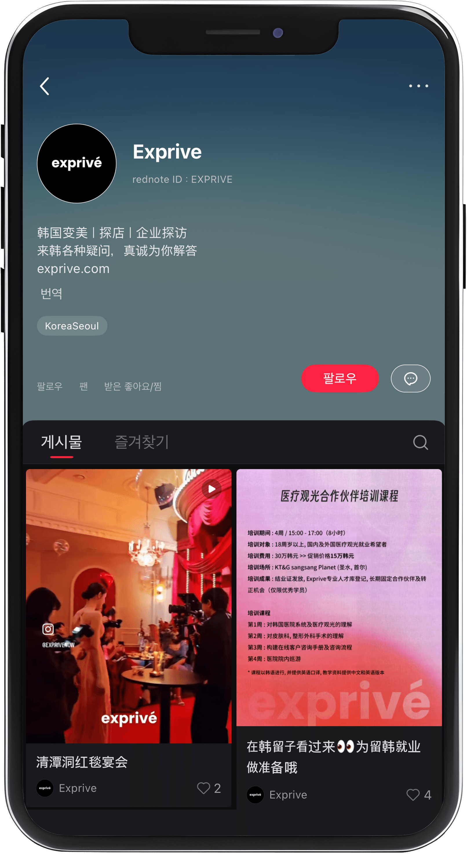 엑스프리베 자체 인스타그램, 틱톡, 샤오홍슈 운영